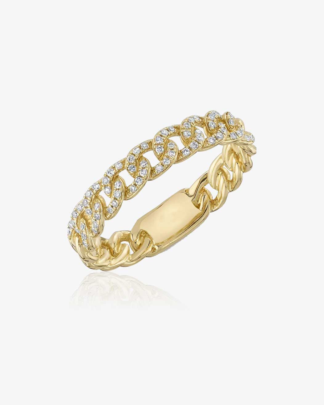 Radiate sophistication with this 18kt rose gold Cuban link ring, accented with brilliant diamonds for a modern yet timeless statement.
