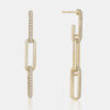 Featuring an elongated chain-link silhouette, these earrings redefine elegance with a sleek geometric touch. The alternating links—some polished in pure gold and others encrusted with brilliant diamonds—create a stunning contrast of texture and light. Their graceful drop design offers movement and sparkle, making them a perfect statement piece for day or night.